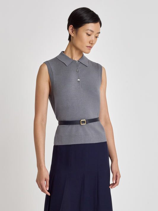 Silk Cotton Sleeveless Polo