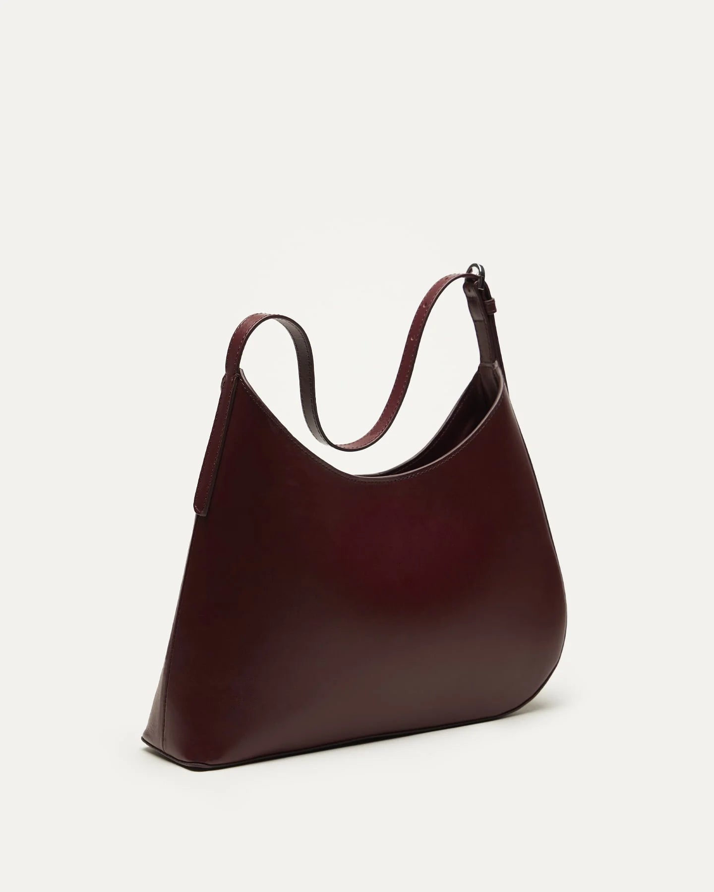 A harmonious blend of curves and angles, pristine lines, and a gracefully bold silhouette define this style as an embodiment of understated luxury. As a meticulously streamlined piece, seams only emerge where necessary, allowing the smooth leather to stand on its own, evolving with grace over time.