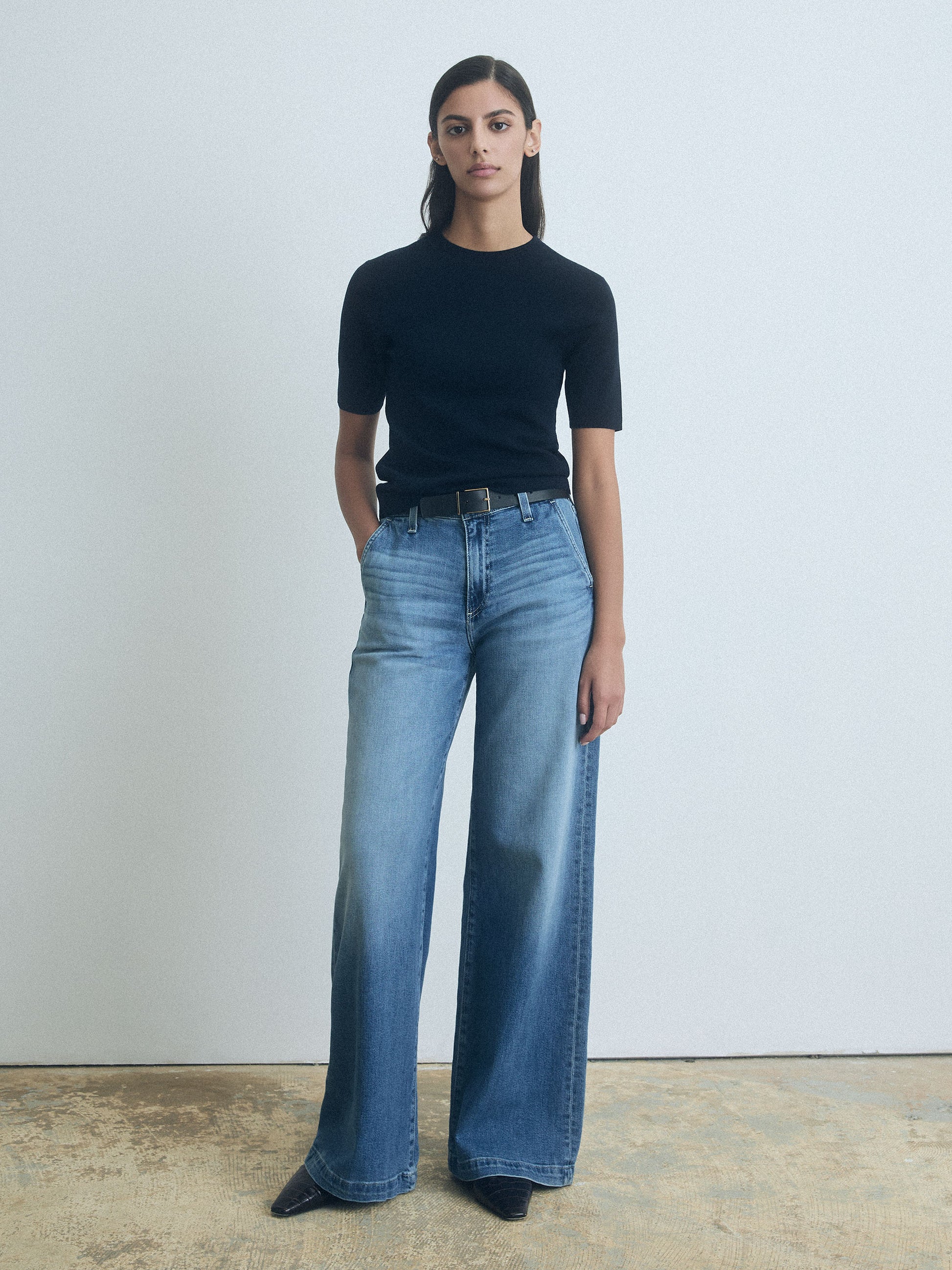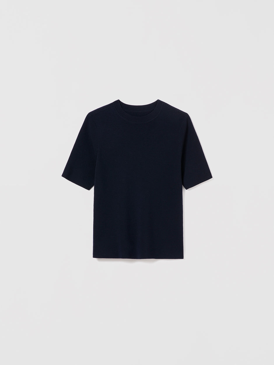 Short sleeve crew neck sweater in Extrafine merino Wool
