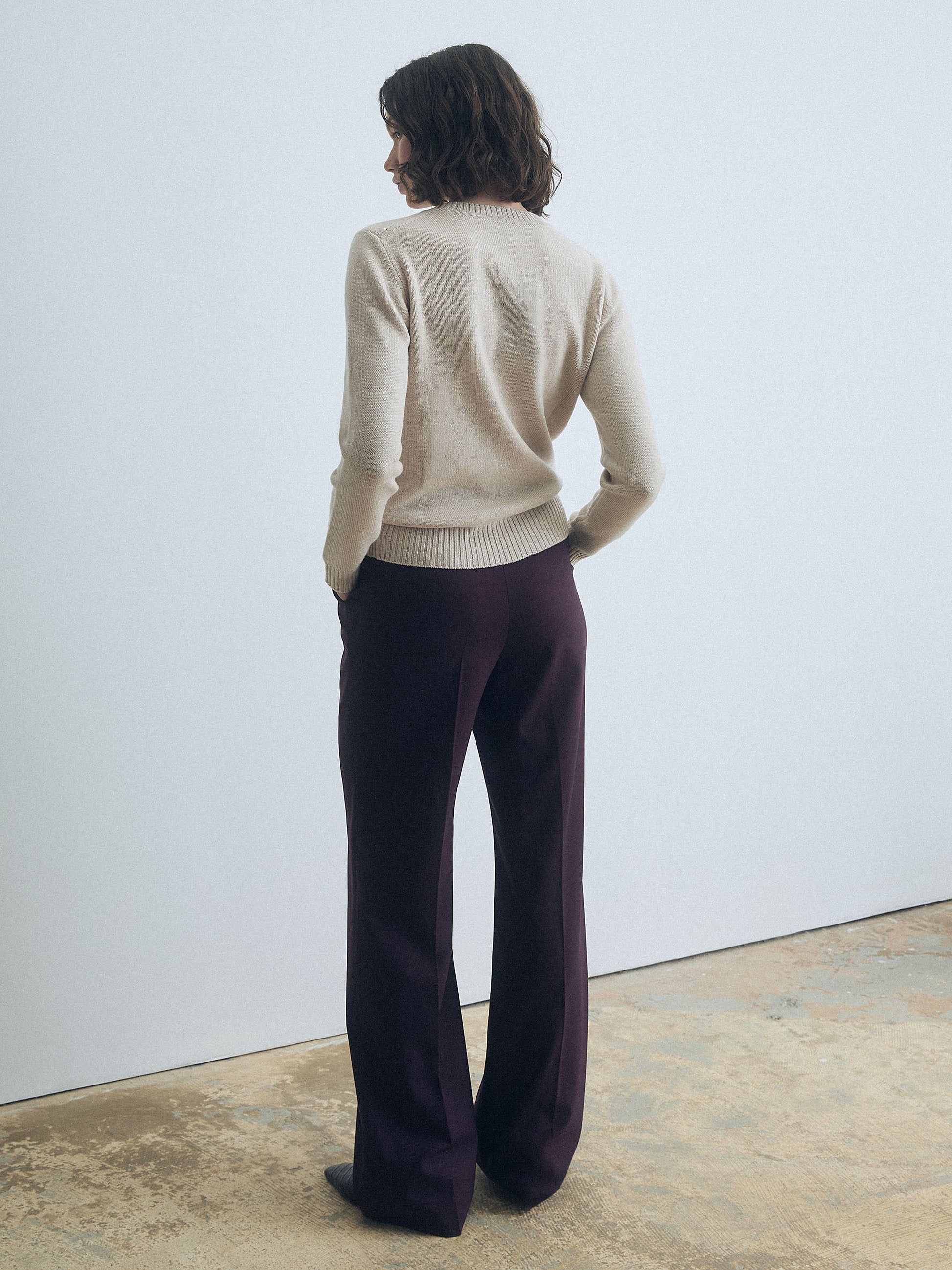 Wool-blend straight-leg pants with slash pockets, back welt pockets, belt loops and a zip fly with hook-and-eye fastening.