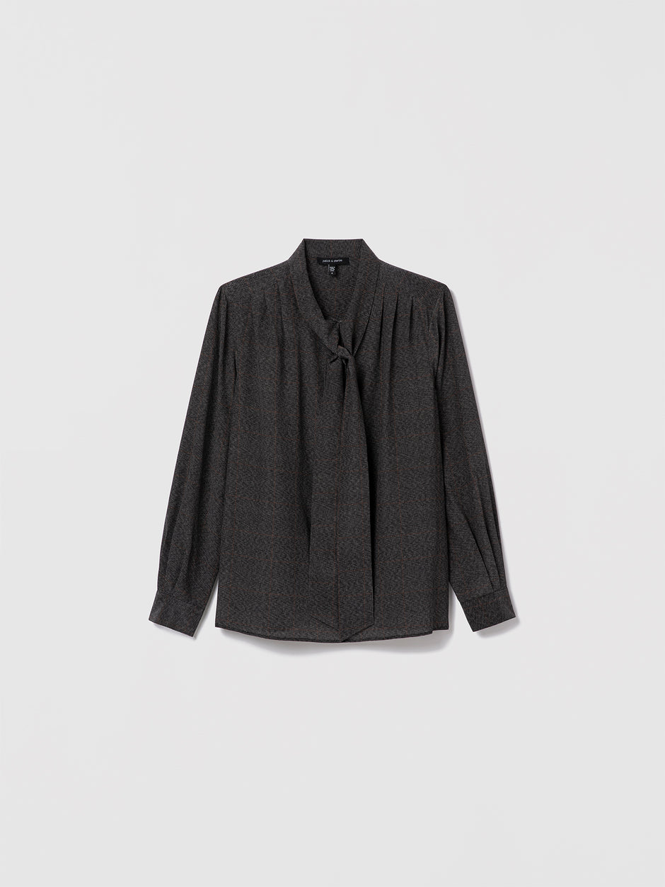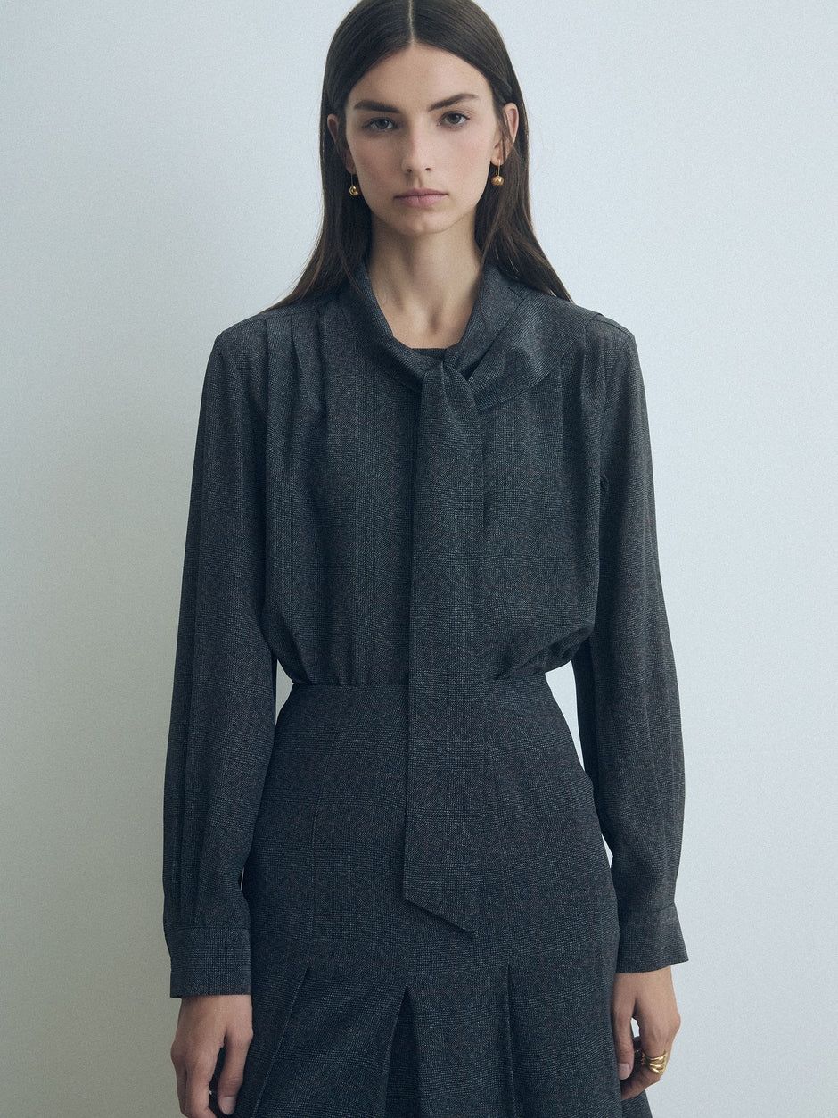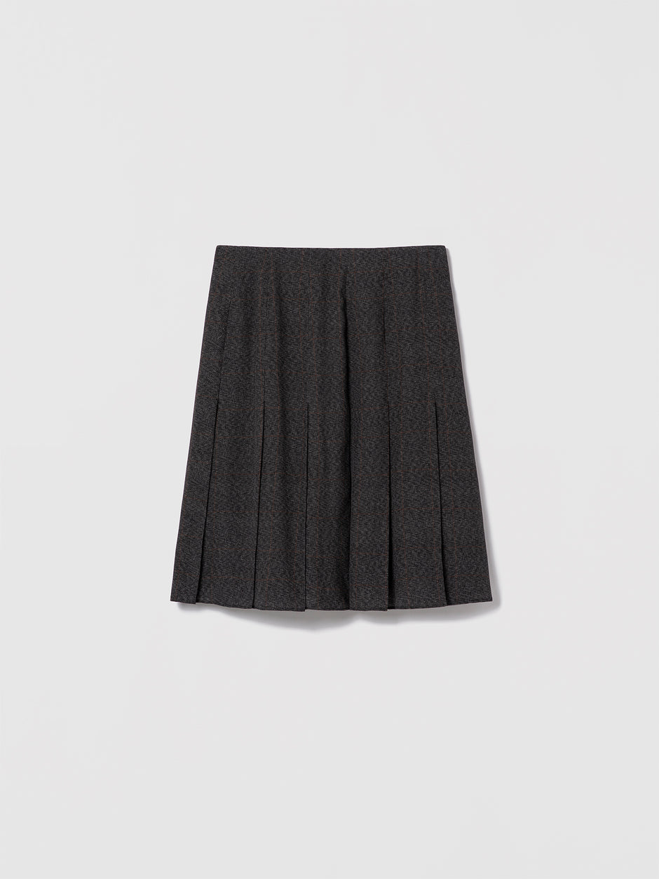 Pleated Prince of Wales silk skirt with invisible zipper.