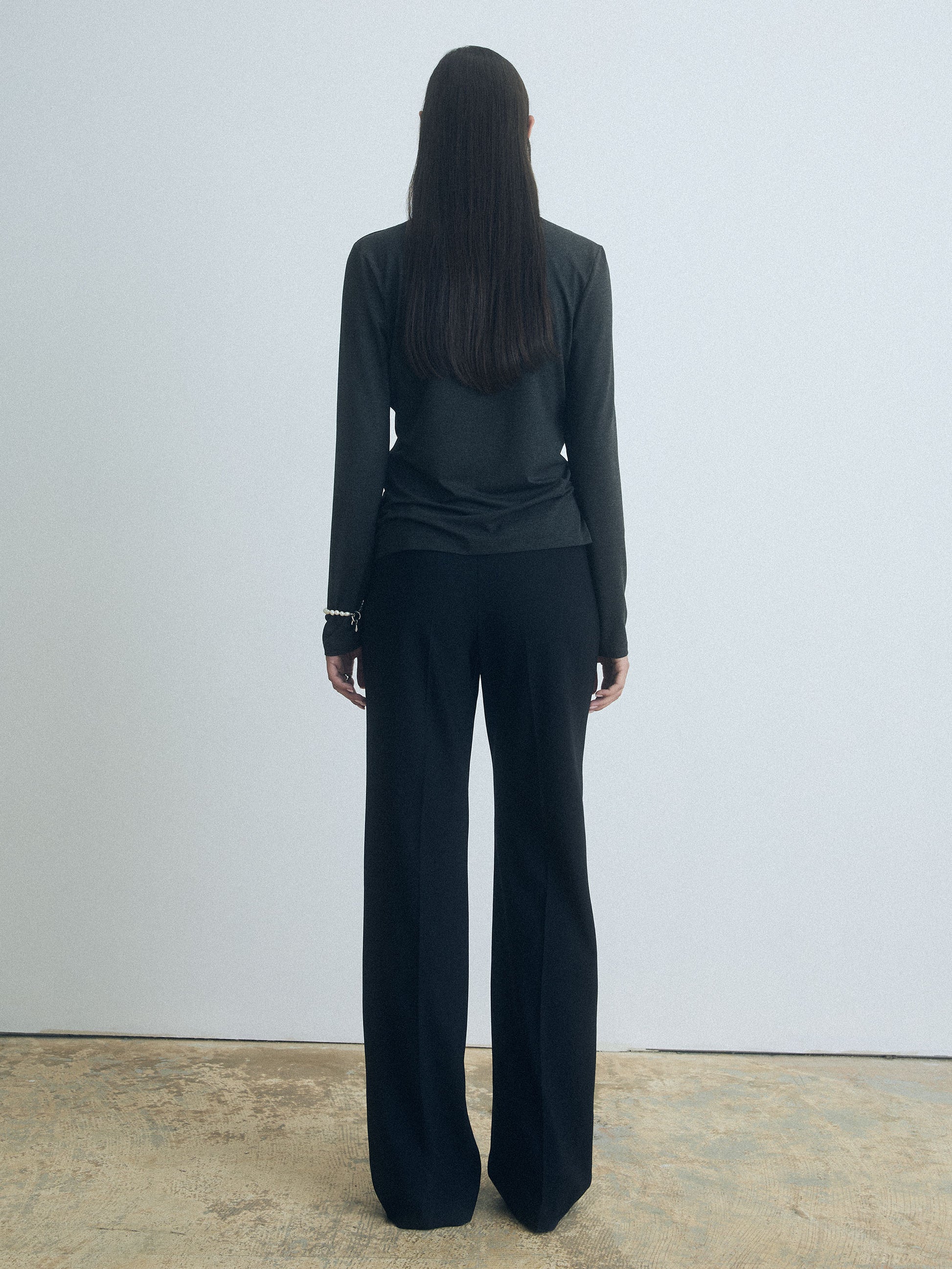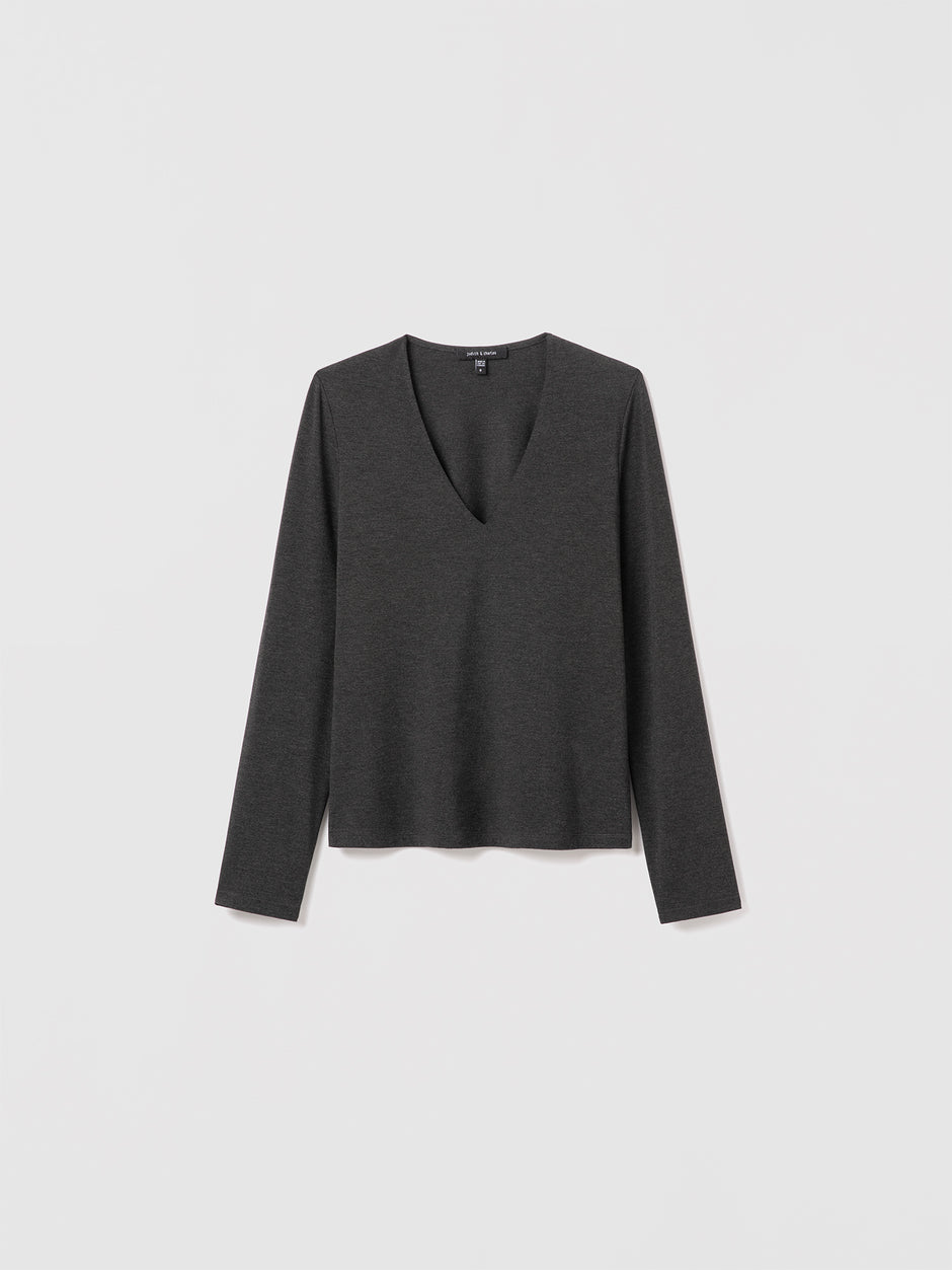 • Judith & Charles charcoal V-neck long-sleeve T-shirt in fluid viscose jersey, fitted silhouette.