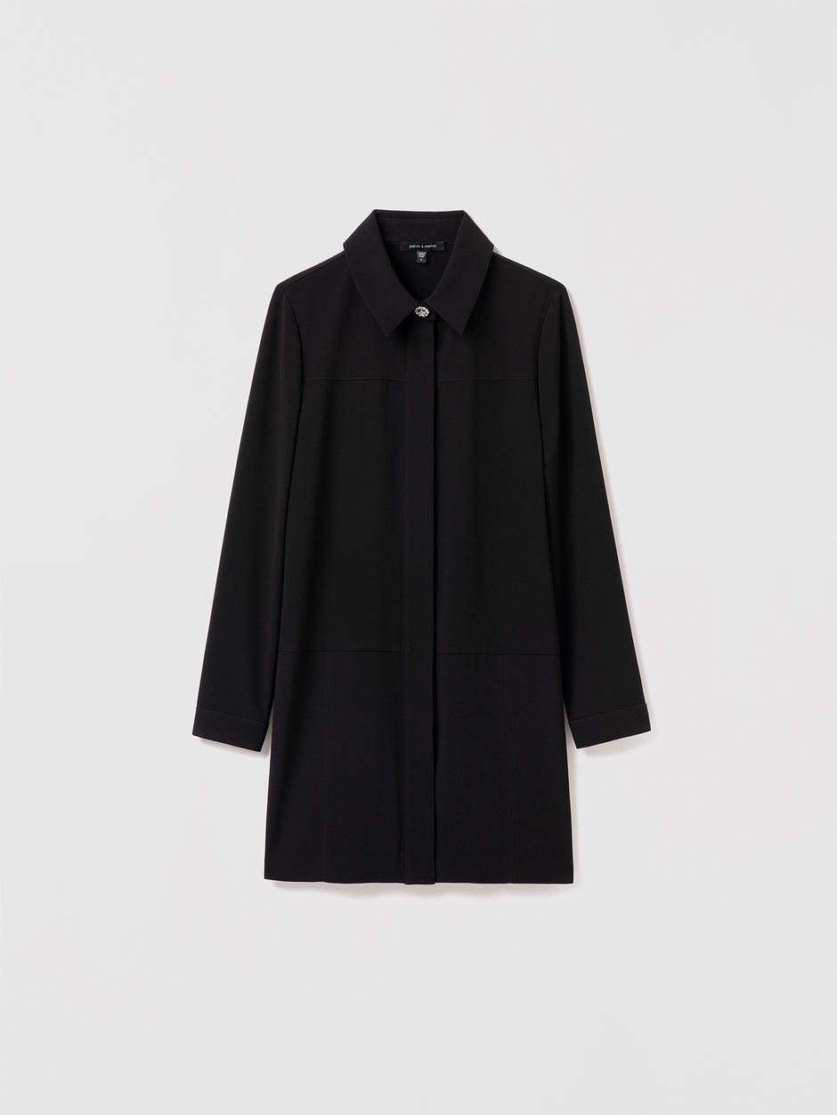 — Jewel button at neck and cuffs