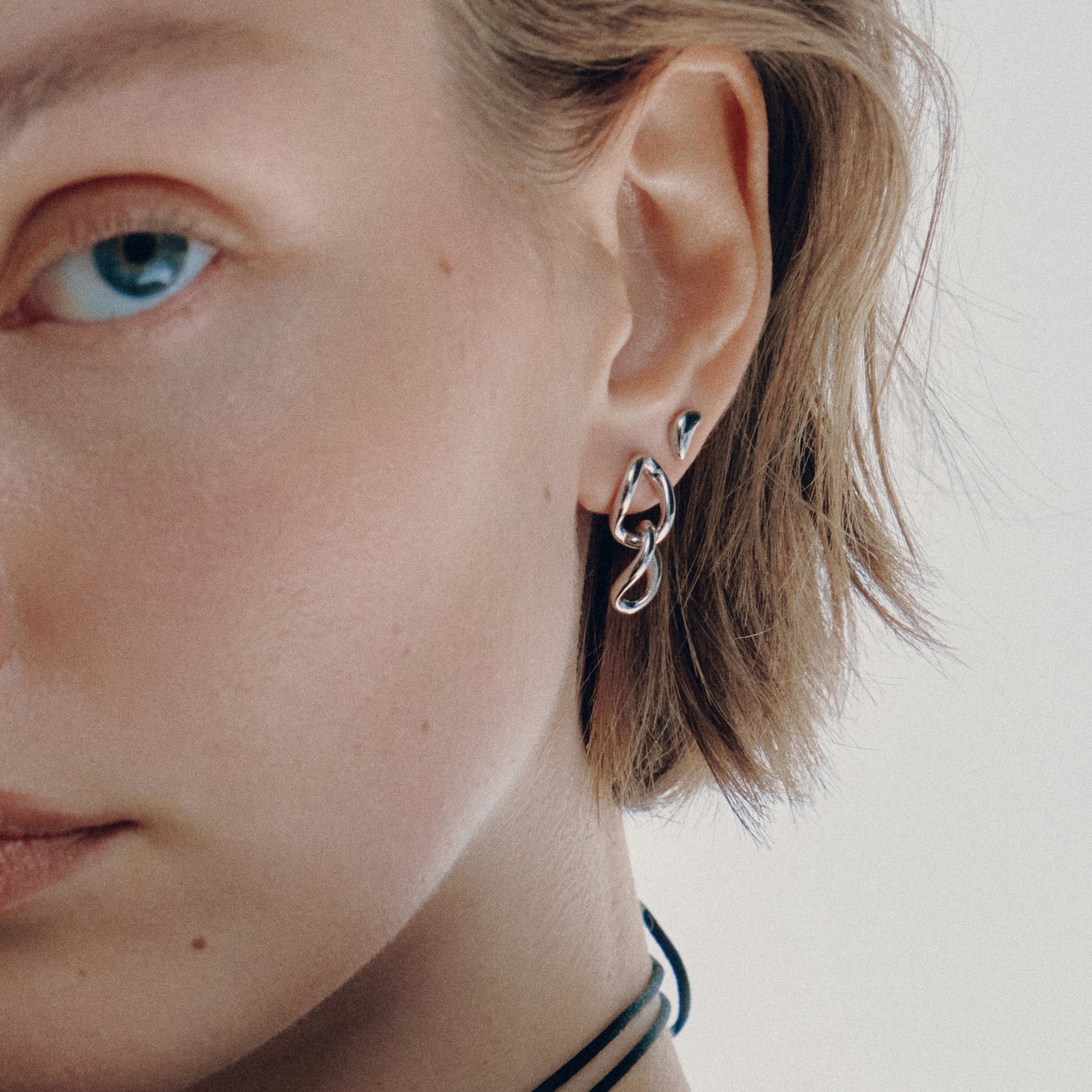 Meet your new everyday essentials. These mini double links are subtle but strong, effortlessly pulling your look together. Rhodium plating, hypoallergenic posts Hand-cast & polished forms 0.4" width, 0.9" drop Style: BK-W2507 Made with love in Toronto, Canada